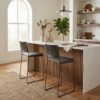 The New York 17" Counter Height Chair features rich black buffalo leather upholstery paired with a durable iron frame for a bold industrial modern look. A braided leather back adds texture and visual interest, while the sturdy construction ensures long-lasting support. Perfect for kitchen islands, bars, and contemporary interiors, this counter height chair offers both style and durability.