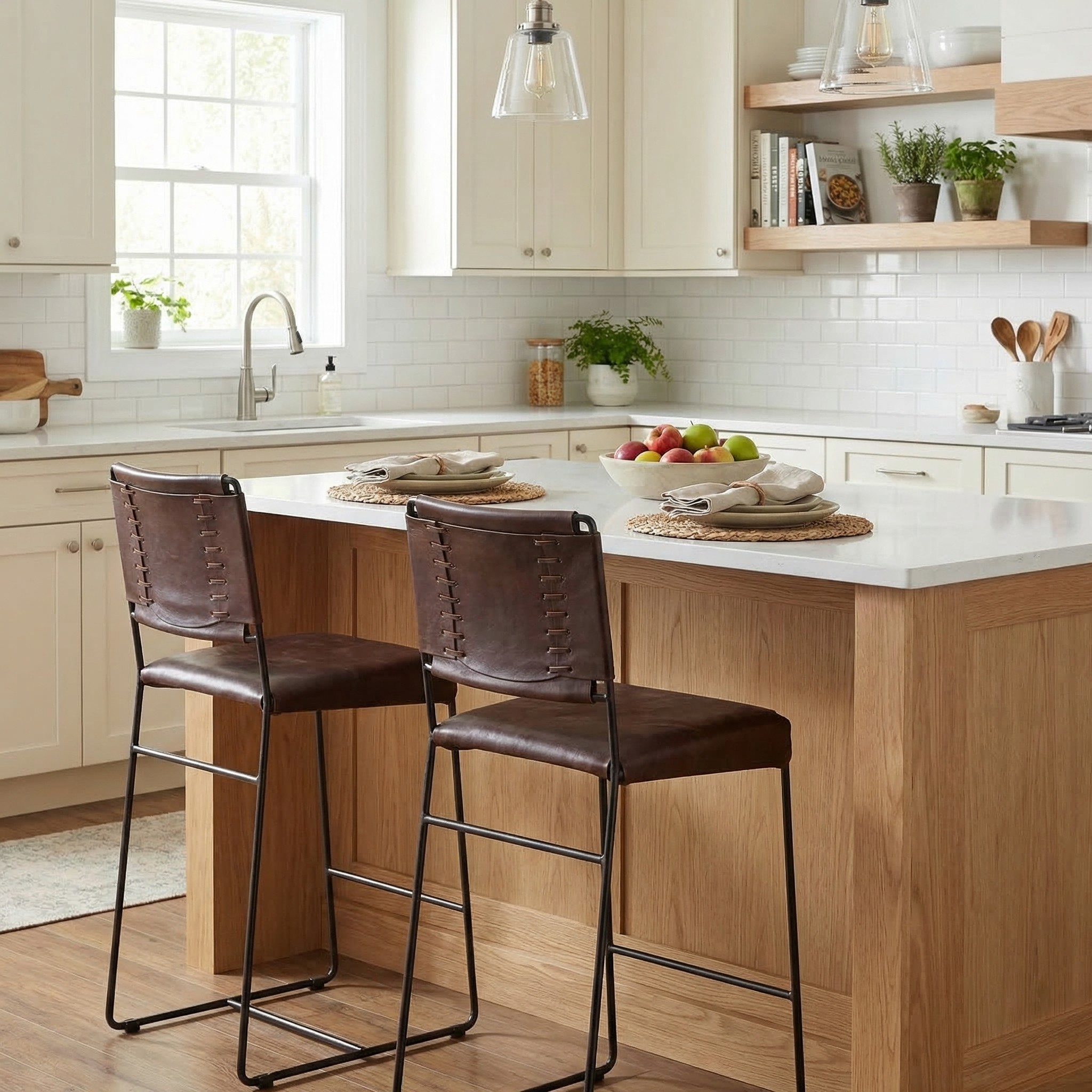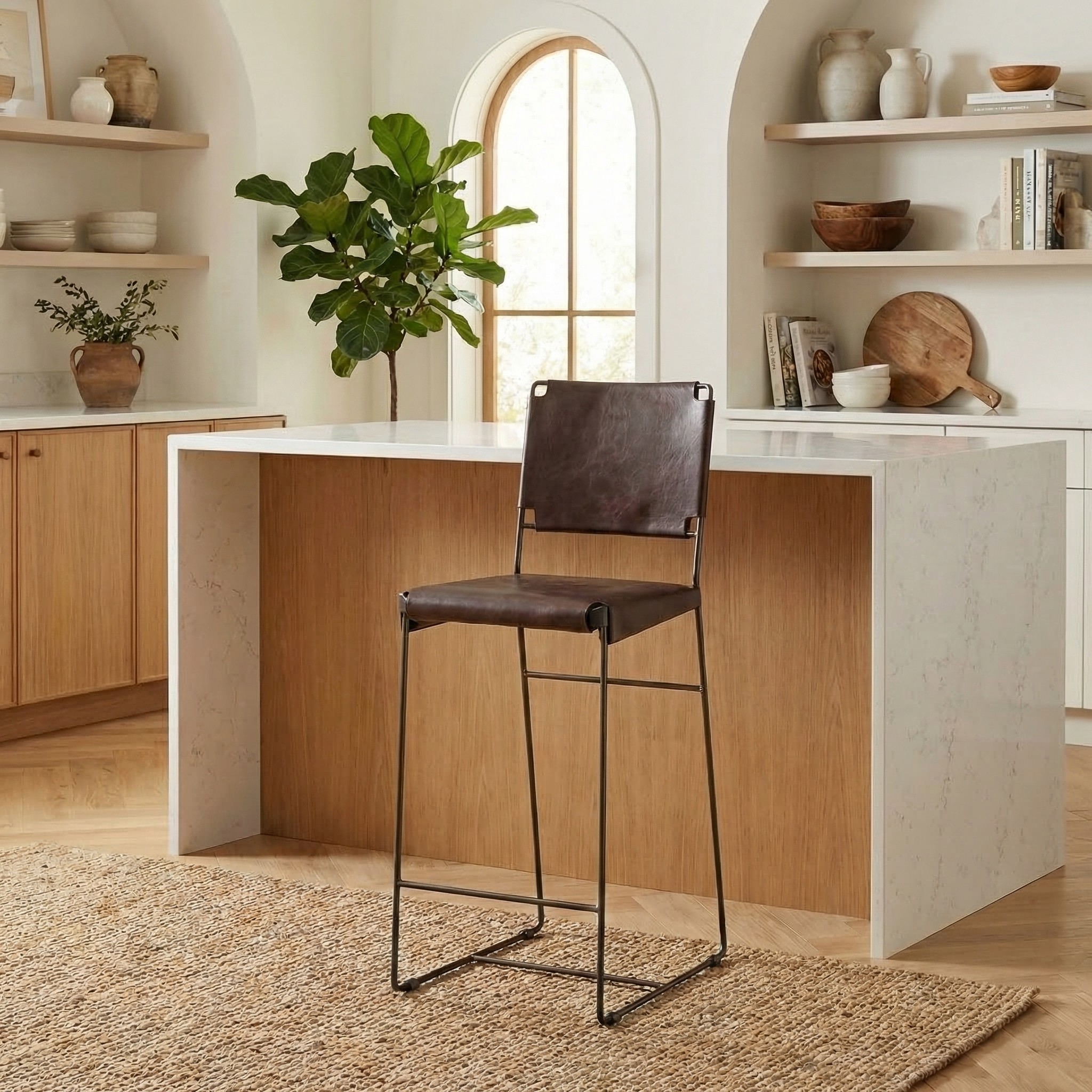 The New York 17″ Counter Height Chair features rich chocolate top grain leather upholstery paired with a durable iron frame for a bold industrial modern look. A braided leather back adds texture and visual interest, while the sturdy construction ensures long-lasting support. Perfect for kitchen islands, bars, and contemporary interiors, this counter height chair offers both style and durability.